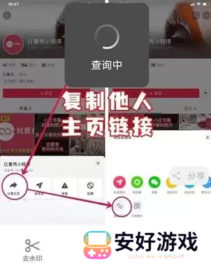 2、进入之后,用户找到需要查询的个人都有账号。在把对方个人账号中作品链接复制出来;