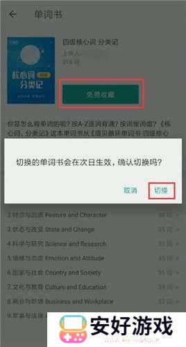3、点击免费收藏,选择切换,单词书就选择成功了。