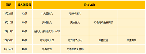 除了海量的福利活动,新服“萨芬特拉”在等级和巢穴的开放上也独具特色。为了让新手玩家能够平稳成长,新服的初始服务器等级设定为32级,14天后将逐步开放至40级。届时,冒险家们不仅能体验到40级版本的精彩剧情,还能挑战狮蝎巢穴、天启巢穴,并获得40级高级装备词缀。随着游戏的深入,地狱犬巢穴(挑战模式)、海龙巢穴(外围+核心)、专精技能、史诗级装备进化,以及顶级难度的经典海龙巢穴,都将按照新服的专属节奏陆续开放,为冒险家们带来更加丰富多样的游戏体验。