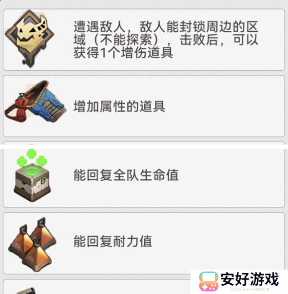 玩家在探索的途中会发现很多道具,每个道具都有不同的效果。道具效果如下: