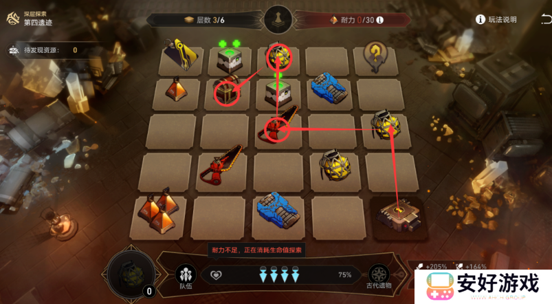 当玩家的耐力消耗完后,每次探索会扣除全队3%/5%的生命值。