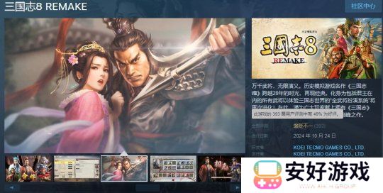 《三国志8重制版》已在Steam上发售,标准版售价349元。截至目前,该作Steam上总评为“褒贬不一”,有玩家表示游戏价格虚高,体量内容不符预期。