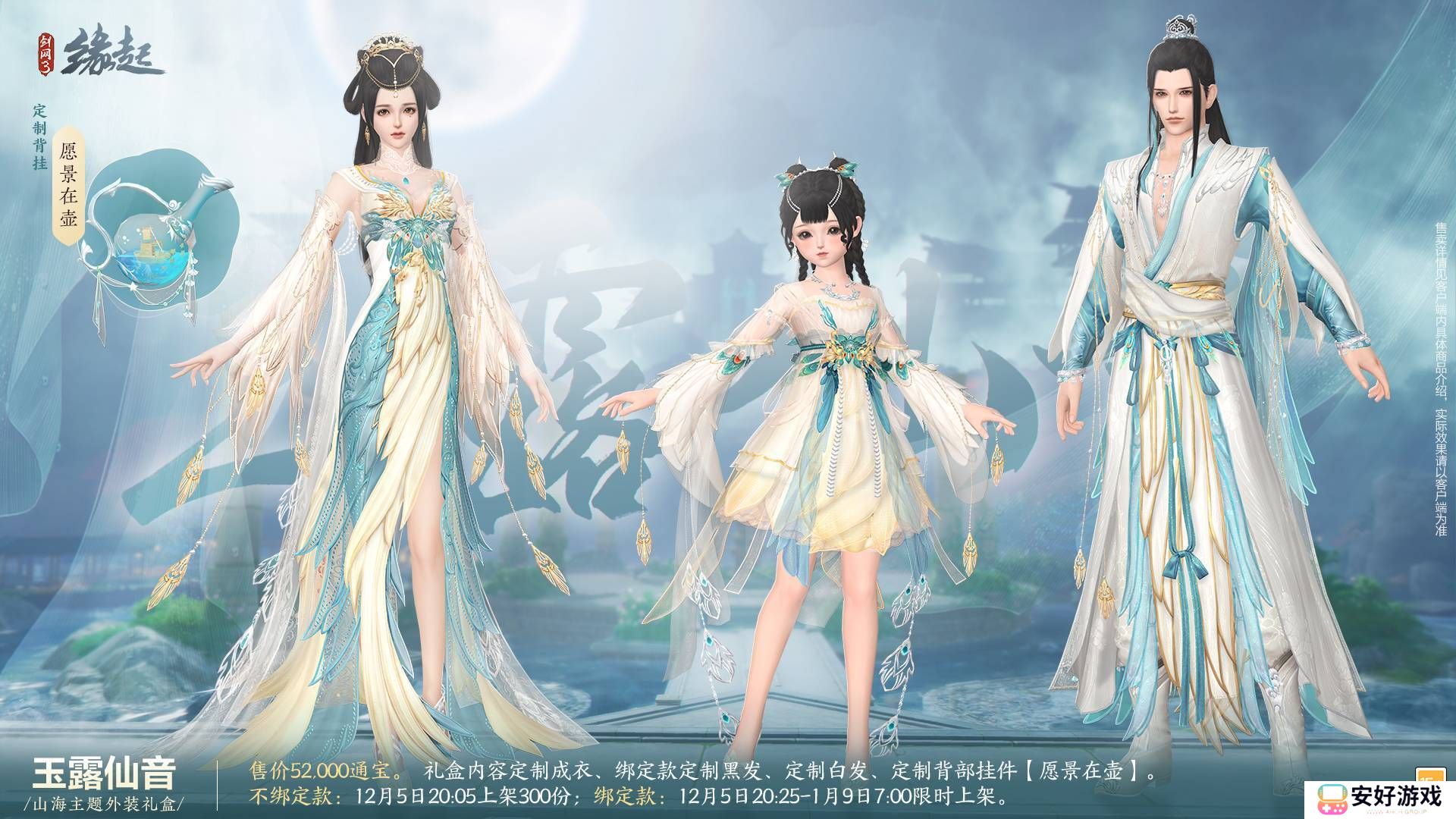 庆典之际,山神驾临,鸟雀欢歌,游戏内推出了多款主题外装。其中,山海主题外装礼盒“玉露仙音”以其仙气缥缈的设计赢得了广泛关注。成女款长裙曳地,胸前花纹犹如青鸾展翅,袖口金翎飘逸,尽显尊贵非凡;成男款则以浅白云纹装饰双肩,轻纱环腰,宛如神祇;萝莉款短裙俏丽,飘带绕肩,灵动可爱,如同山间精灵。使用该礼盒中的特效挂件“愿景在壶”后,角色将手持玉壶,姿态优雅,仿佛置身于仙境之中。