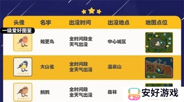 心动小镇大山雀在哪里出现?喜欢收集观鸟的玩家经常会找不到特定的鸟类出现位置,大山雀主要出现在温泉山区域中,而且是全时段出现的,比较好找。下面为大家介绍一下在哪里可以拍到大山雀。
