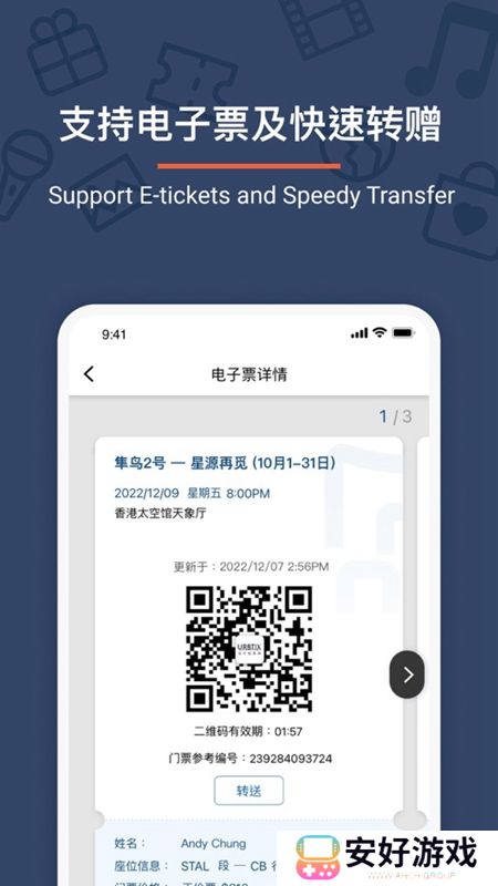 2.电子票务:购买的票务将以电子形式发送至用户手机,无需纸质票据,方便携带。