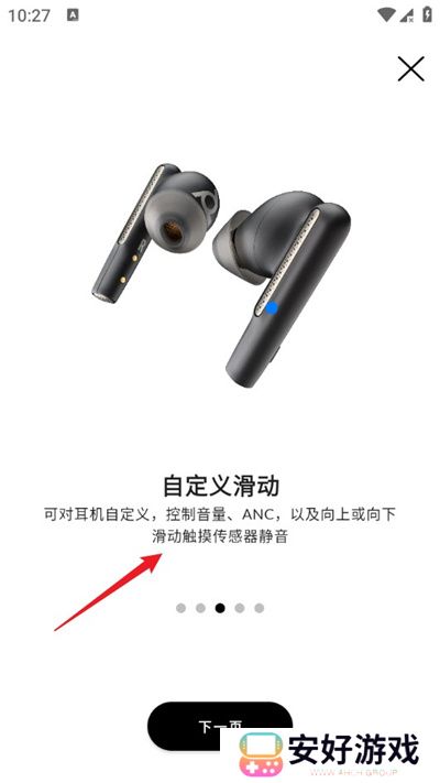 可对耳机自定义,控制音量、ANC,以及向上或向下滑动触摸传感器静音。