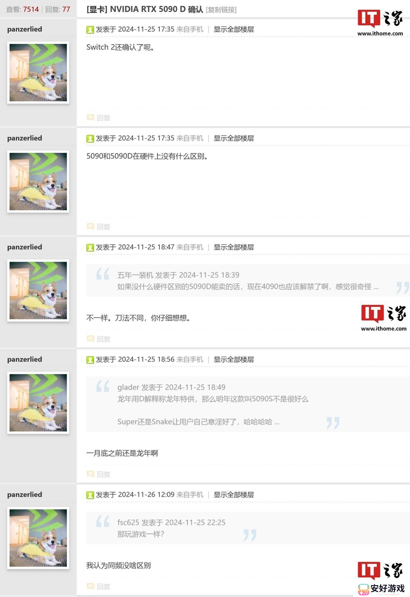 近期,在Chiphell论坛上,一位名为panzerlied的消息人士针对英伟达即将推出的GeForce RTX 5090 D显卡发表了看法。据其透露,RTX 5090与RTX 5090 D在硬件构造上并无显著差异,并且在相同频率下,两者的游戏性能表现也相当接近。