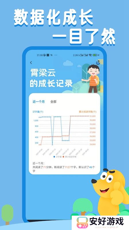 3、AI技术量化阅读过程,实时记录识字量和阅读时间,成长清晰可见