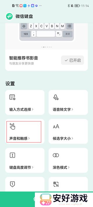 微信键盘声音怎么关掉?1、首先打开微信键盘app,找到声音和触感这一选项并点击ta