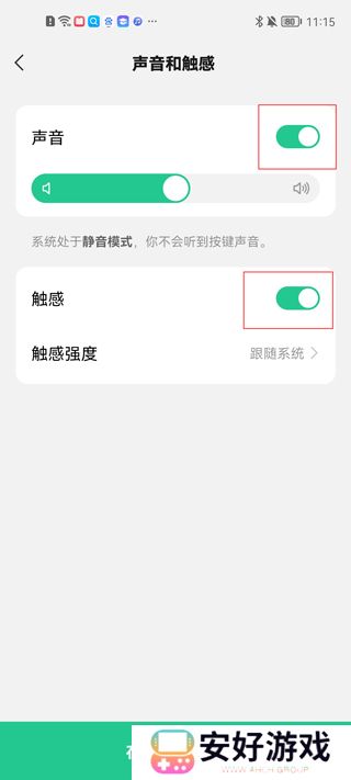 2、切换至新页面后, 可以看到声音和触感两个选项,点击关闭即可