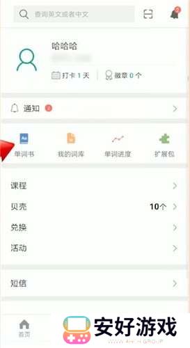 1、打开扇贝单词,点击右下角我的,