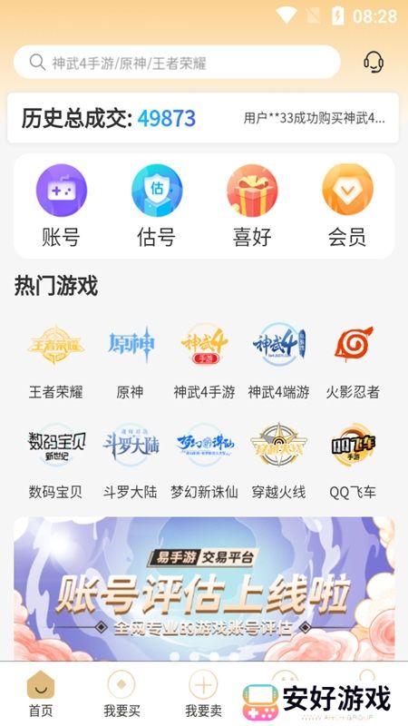易手游官方app客户端是网易手游账号交易平台应用,由原网易藏宝阁全新升级,支持当下热门游戏资源,可实现王者荣耀、穿越火线、火影忍者、神武4、数码宝贝等游戏账号一键估号出售等服务,功能十分强大,下载安装使用吧!