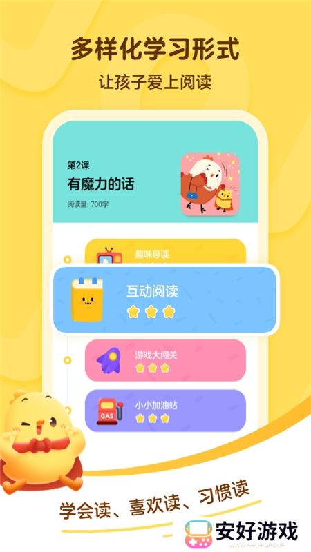 软件内容1、趣味阅读:语音伴读,点击互动。