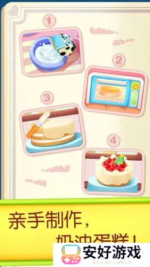 3. 完成任务:根据游戏提示完成特定的任务,如制作特定形状的蛋糕、使用特定颜色的奶油等。