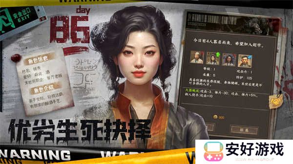3. 幸存者招募:招募不同技能和背景的幸存者加入超市团队,他们将在经营、防御、探索等方面发挥重要作用。
