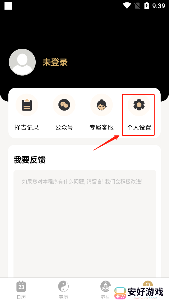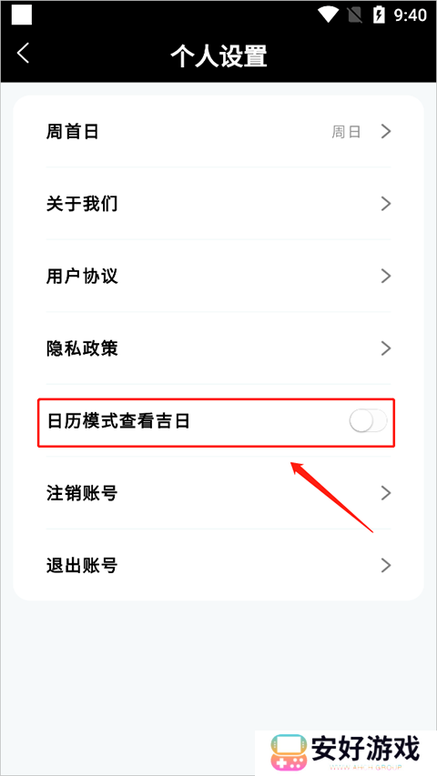 3、然后就可以在“个人设置”页面选择“日历模式查看吉日”了哦。