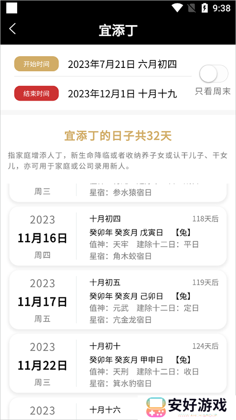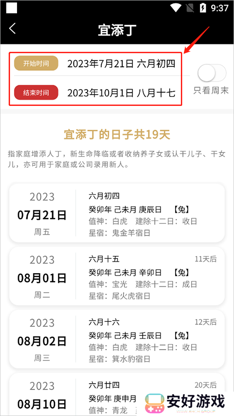 4、然后就可以查看有哪些好的日子,在这里面选择自己需要的。