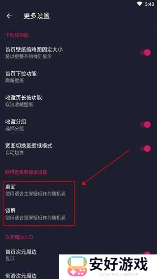 3、在更多的设置中,我们可以找到随机壁纸数据原始设置这里有两个选项:主屏幕和锁屏。您可以根据自己的需要进行选择