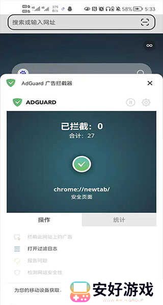 5、随即打开ADGUARD广告拦截器,可以轻松拦截网页中的广告。