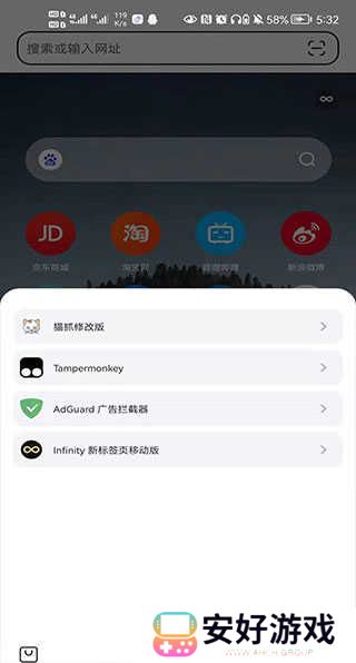 这些功能都是作为一个手机浏览器该有的基本内容,我们重点看看他的插件功能。