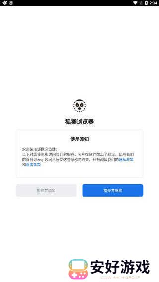 1、在本站下载并安装lemur浏览器,首次打开软件,接受并继续使用须知;