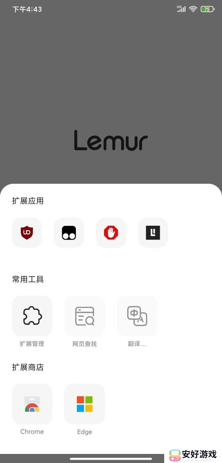 「狐猴浏览器」内置了Chrome网上应用店和edge外接程序(Chrome网上应用店需要特殊网络打开下载),可以直接在应用店里下载安装扩展插件。