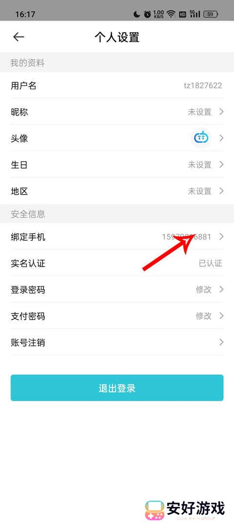 3、当进入到个人设置页面之后,在下方有一个安全信息栏目,在安全信息的第一栏就是绑定手机,点击进入;