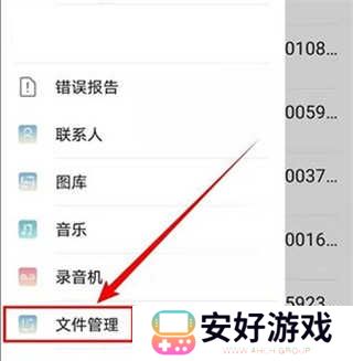 8、在弹出的“打开文件”侧边栏中,选择【文件管理】。