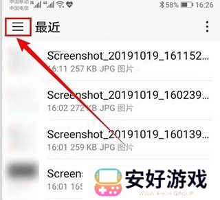 7、在打开的“最近”页面中,点击左上角的三横图标。