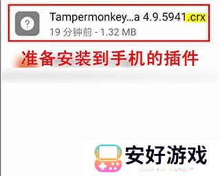 2、其次需要准备好要安装到手机上的 .crx 格式的扩展插件,插件可以在第三方插件网站下载,这里我下载了一个使用非常广泛的“Tampermonkey”插件来进行演示。