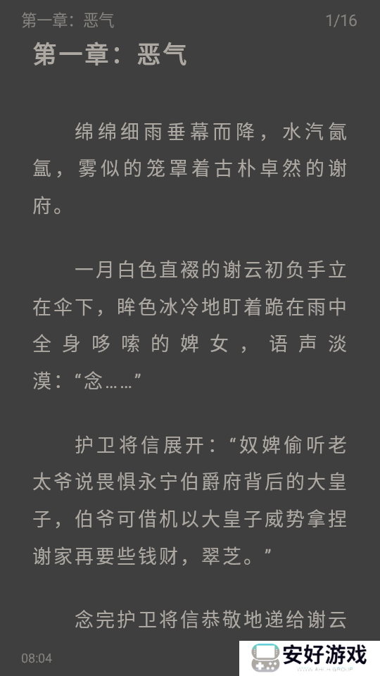 小说阅读页面点一下中间,跳出设定页面,点击右下角的“设定”就可以调整字体大小跟背景颜色。