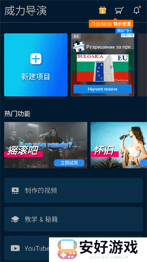 2、在首页当中,用户可以创建视频、查看教程、上传下载项目包;