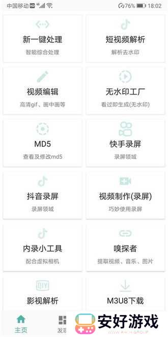 视频工具箱高级版是一款大家都在用的常用工具类软件,这款软件中有很多非常强大的功能,用户通过这款软件可以一键处理各种短视频并自由的编辑视频内容,还有短视频的解析和格式转换,去除水印等多种丰富的功能,有需要这款软件的朋友快来下载视频工具箱高级版体验吧!