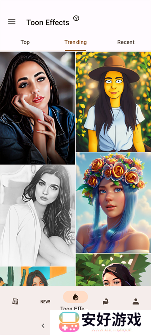 1、成功下载安装之后打开应用,在ToonMe.com中可以左右滑动选择一个喜欢的ToonMe特效,然后选择照片;