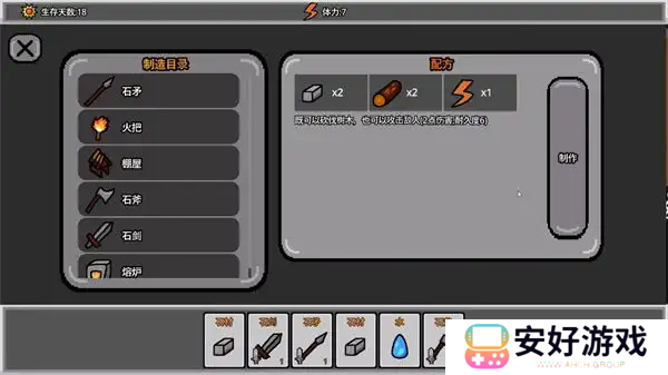 4、火把放置后点亮周围3x3的地块。放置后双击获得[光],消耗1点体力,持续次数-1,冒险家每天可以获得6点体力,双击可以进入制作界面;