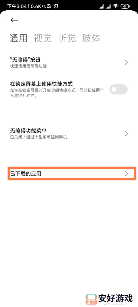 3、接着在手机设置中依次点击:无障碍>已下载的应用>李跳跳,然后授权无障碍服务;
