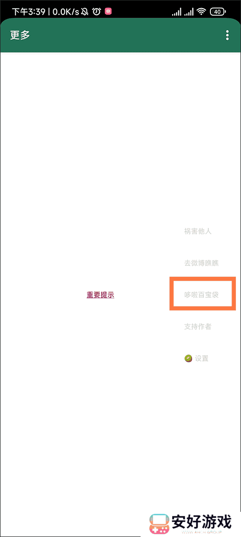4、点击更多板块,你可以查看重要提示,打开哆啦百宝袋,支持作者,或者查看其他设置;
