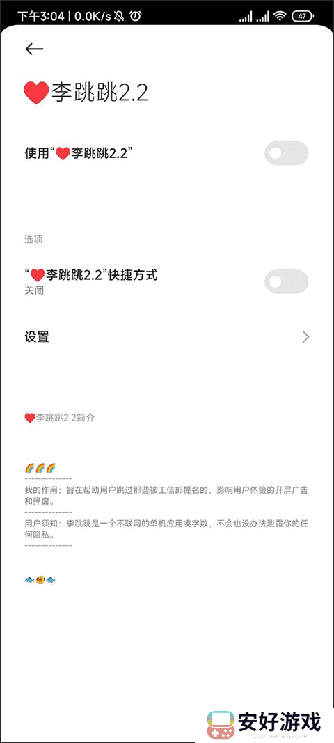 进入到小编这个界面,把最上面的【使用李跳跳2.2】点开就可以了。