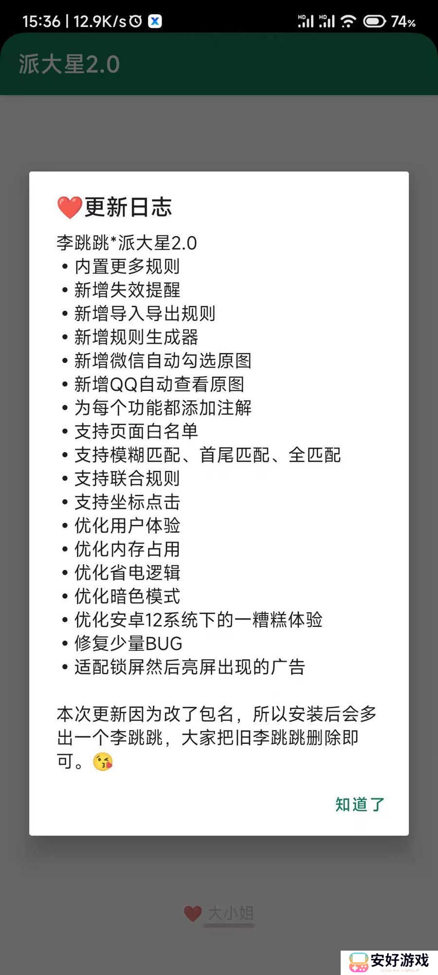 1、在本站下载好李跳跳派大星版本,打开软件会看到用户须知,我们需要点击“知道了”进入软件;