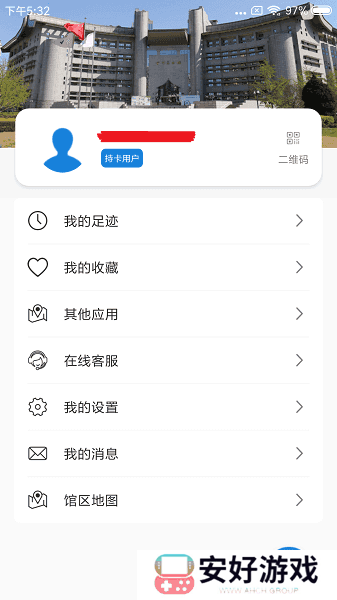 3、在个人资料中,就能看到“绑定读者卡”的选项了,点击进入;