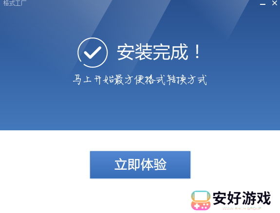 5.格式工厂软件安装完成,如下图所示,表明格式工厂软件已经成功安装到你的电脑上,然后点击界面的立即体验选项,就可以关闭安装界面打开软件进行体验了。