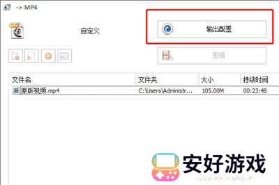 3.之后点击上方的输出配置,选择自定义,想要压缩视频大小,而不影响视频的质量的前提下,就要从视频的音量大小,屏幕大小这两个参数来进行调整。