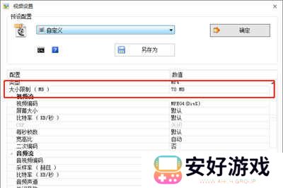 将视频的屏幕大小调制比原版视频要低,将音量控制选项中100%调整到50%,更直接的方法就是直接将大小限制(MB)中调制你想要的视频大小。