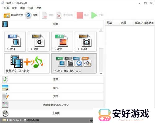 格式工厂去广告是一款免费的多功能的多媒体格式转换软件,这款软件支持几乎所有类型多媒体格式,包括MP4、AVI、3GP、WMV、MKV、VOB、MOV、FLV、SWF、GIF等众多是主流视频格式,并且用户还可以使用软件自由转换音频、图片、DVD等诸多文件。