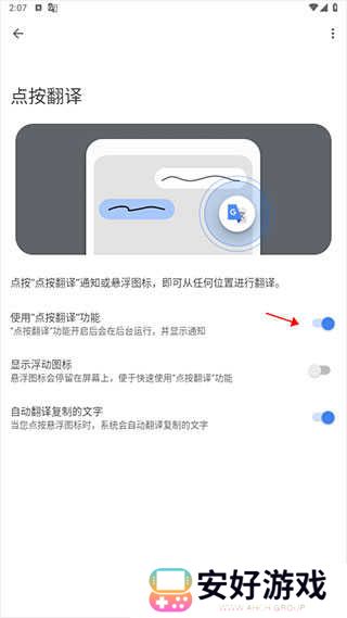 3、进入点按翻译页面找到“启用”,点击右侧的按钮即可开启