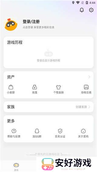 3、在“我”里,你可以看到自己的基础信息、游戏历程、资产、家族和软件基础功能。