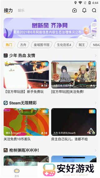 1、首先在本站下载并安装软件,进入软件后在“游戏”中各类游戏让你眼花缭乱。