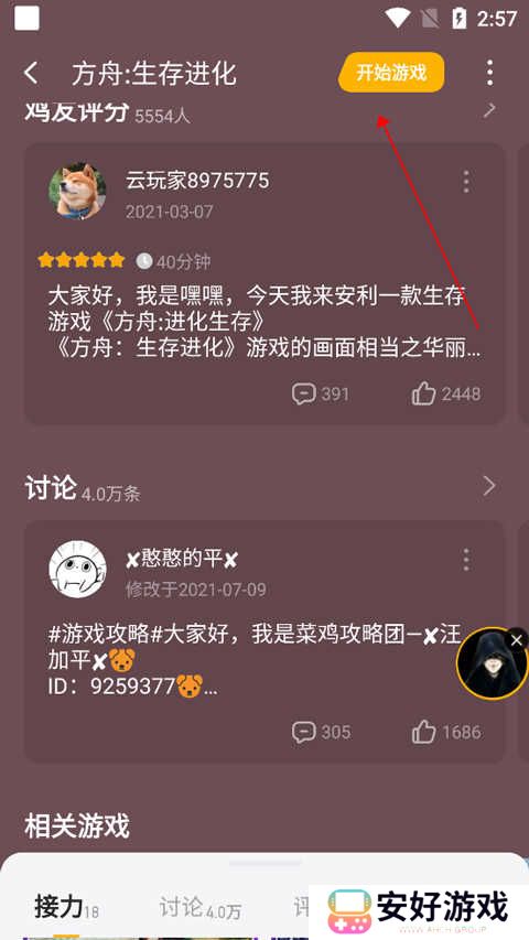 3、社区页面,鸡有圈你可以发布的你的游戏动态、接力是分享玩家游戏视频的,娱乐可以查看你的游戏榜单。