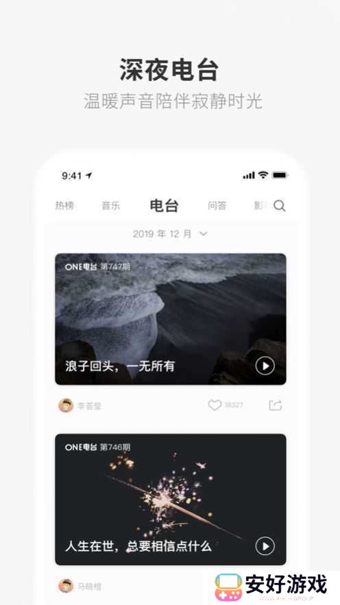 3、one一个还提供了深夜的电台,收听高品质内容的电台可以让碎片时间更有意义;