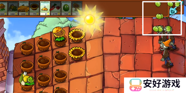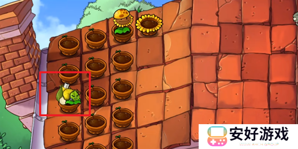 1、玩家们首先需要造关卡的场景里面种植一株玉米卷迫击炮。
